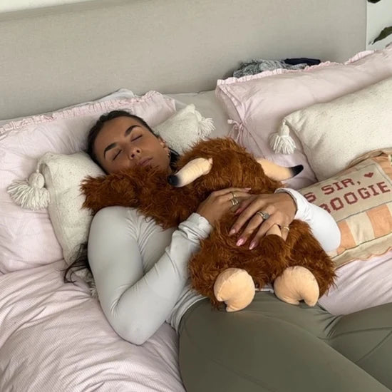 Absolutely. Many people love sleeping with Pookie for nighttime anxiety or insomnia. His weight and softness can help calm your nervous system and promote deeper sleep.